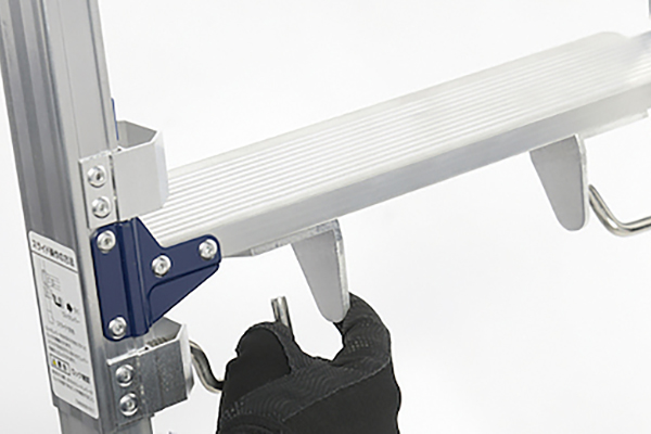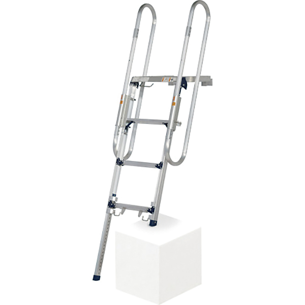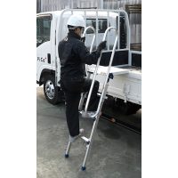 | 特徴 | トラックのあおり部分に取付け荷台への昇降をサポートします ●折りたたみ式でコンパクトに収納できます ●回転スライド収納式手すり標準装備 ●足の長さは25mmピッチで調節できます(最大約43cm) ●フック内幅寸法63mm ●下ろした状態のあおりにも取付けが可能です |